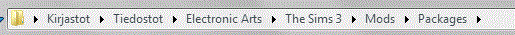 Sims 3\Packages\ (Tämä siis Windows 7:ssa ja muistelen, että Windows