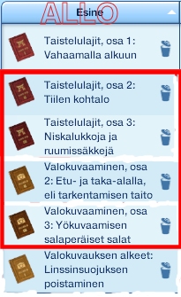 - Valokuvauskirjat 2 ja 3 sekä Sim-Fu kirjat 2 ja 3 on poistettu