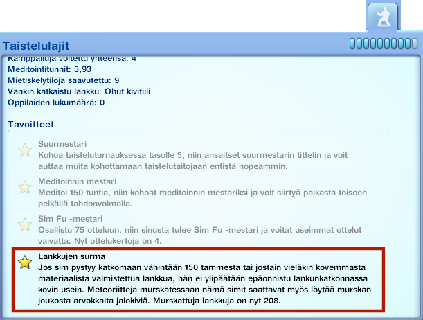 Surma-taitohaasteen avattuasi (katso kuva alla) voit meteoriitteja